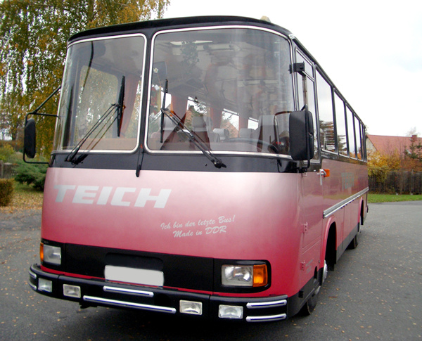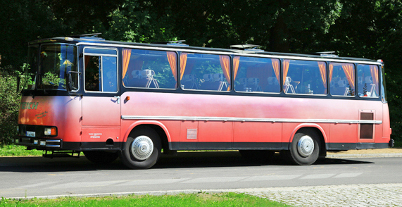 Oldtimerbus Görlitz mieten – für Rundfahrten bis Löbau, Zittau oder Bautzen. Erleben Sie eine Fahrt in einem ganz besonderen Omnibus. Der liebevoll restaurierte Oldtimerbus „Fleischer S4“, mit dem Baujahr 1989, ist der zuletzt in der DDR gebaute Bus. Er versprüht mit seinem speziellen Sonderaufbau den Charme der 80er Jahre. Ausgestattet mit bequemer Bestuhlung, Clubtischen, Gepäcknetzen und einer Bar ist jede Fahrt wie eine Zeitreise. Dieser DDR-Veteran steht für den Transfer Ihrer Hochzeitsgäste, für die Geburtstagsparty oder für eine Ausflugsfahrt in die wunderschöne Oberlausitz zur Verfügung.