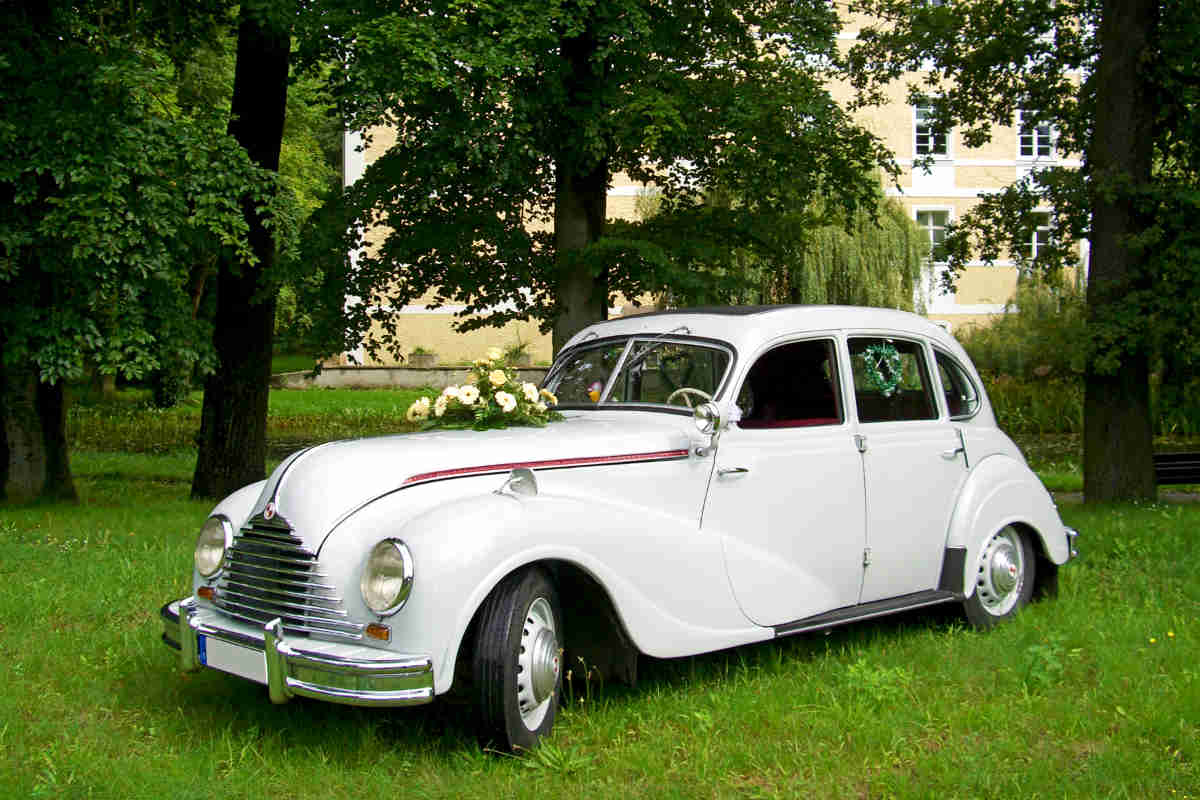 EMW 340 – Das Hochzeitsauto Spreewald! Bereits 1948 wurde im ehemaligen BMW-Werk Eisenach der neue „BMW 340“ entwickelt. Durch Rechtsstreitigkeiten zwischen den Besatzern wurde im Jahre 1950 aus BMW nun EMW, also „Eisenacher Motorenwerk“. Der BMW-typische weiß-blaue Propeller wurde durch ein rot-weißes Firmenemblem ersetzt. Aus dieser bewegenden Zeit stammt dieser für Hochzeiten hervorragend geeignete Oldtimer. Genießen Sie auf Ihrer Fahrt den Charme eines Wagens mit der Exklusivität der 50 er und 60 er Jahre . Diese schöne Limousine können Sie für Ihre Hochzeit in Vetschau, in Cottbus sowie in der gesamten Spreewaldregion mieten. Durch den großzügigen Fahrgastraum eignet sich der Oldtimer besonders für Hochzeitsfahrten. Hier finden Sie gleich die passenden Standesämter im Spreewald.