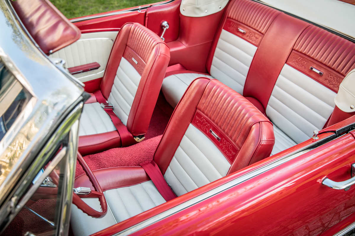 Baujahr 1966, Motor: Ford 289er V8, Leistung: 190 PS, Hubraum: 4,7 Liter, 3 Gang Automatik, bis zu 4 Erwachsene, rote Ledersitze, elektrisches Verdeck, Servolenkung |