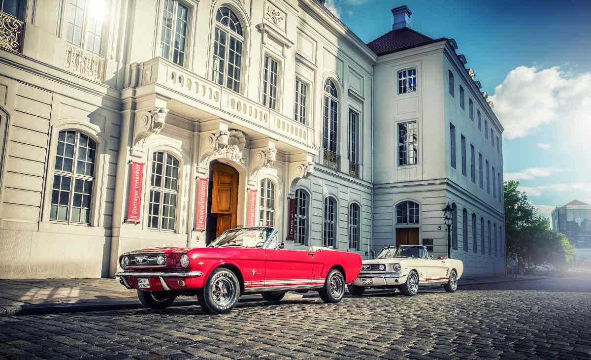 Oldtimer Ford Mustang – das Kultauto aus den USA und bereits zur Markteinführung 1964 zur Legende avanciert! Der Name steht sinnbildlich für freiheitsliebenden Individualismus, V8-Geblubber und schaffte ganz nebenbei noch eine neue Wagengattung – die Pony-Cars. Erleben Sie sich diese Legende amerikanischen Automobilbaus und mieten Sie dieses Schmuckstück in Dresden und Umgebung um mit Ihrer Braut zum Standesamt (Übersicht aller Standesämter in Dresden) zu fahren oder für einen relaxten Cabrio-Ausflug ins wunderschöne Osterzgebirge. Das knallrote Cabrio ist voll restauriert und durch permanente Wartung in sehr gutem Zustand. Damit Sie Ihre Reise in die Vergangenheit gut vorbereitet antreten können, erhalten Sie vor dem Start eine gründliche Einweisung in die technischen Details des Oldtimers. Auch bei der Auswahl einer spannenden Route auf den schönsten Straßen Sachsens sind wir Ihnen gern behilflich. Relaxtes Cruisen in einer automobilen Legende!